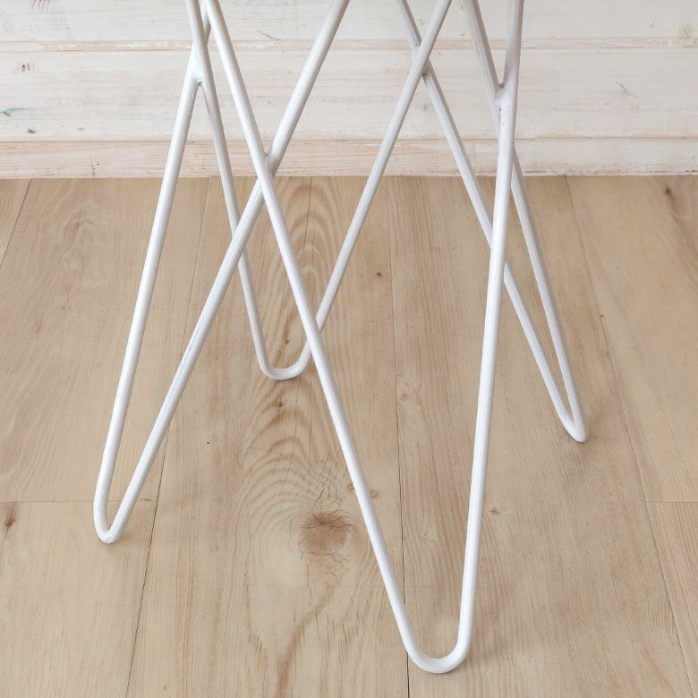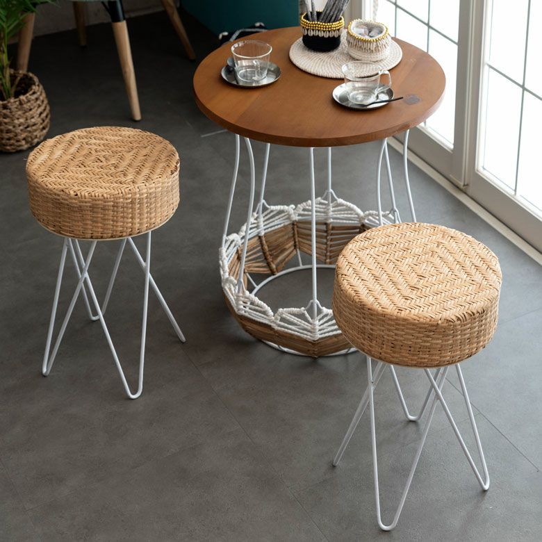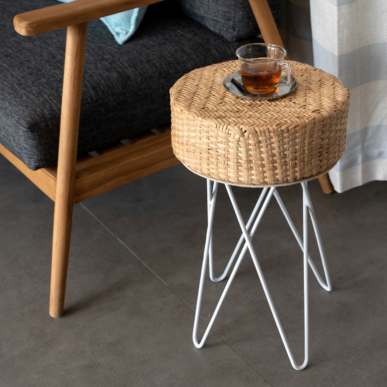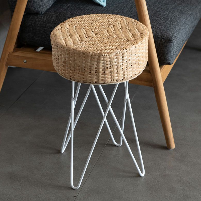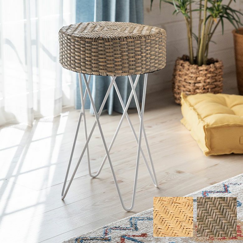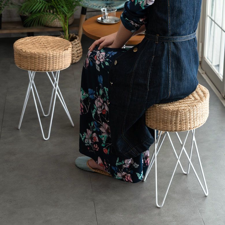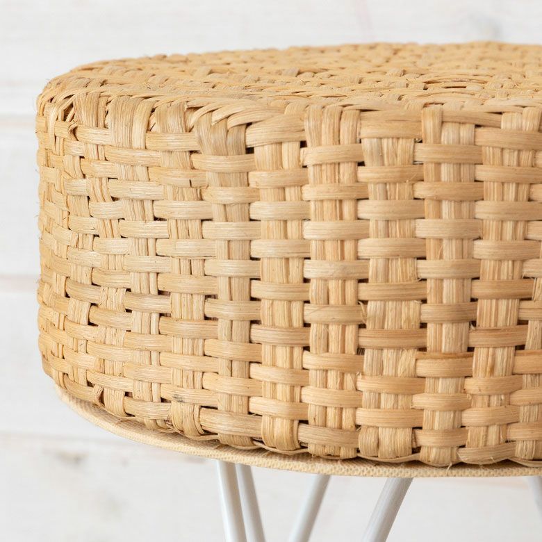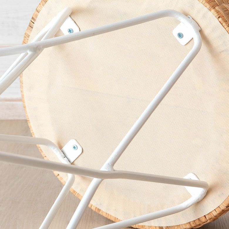 淡いカラーのラタンとホワイトのアイアンを組み合わせたスツール。