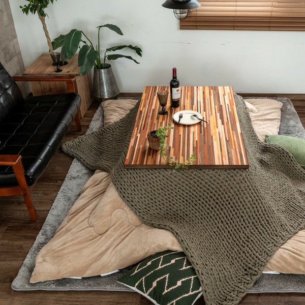 生活感の出やすいこたつをスマートに見せてくれる木製テーブルです。