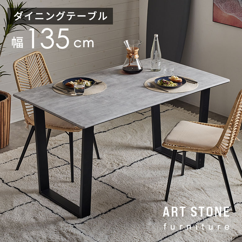 スタイリッシュな雰囲気に引き上げる ストーン調のダイニングテーブル |