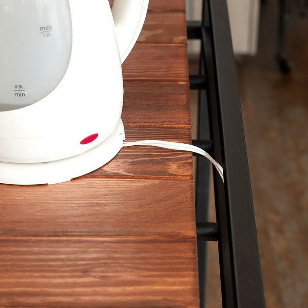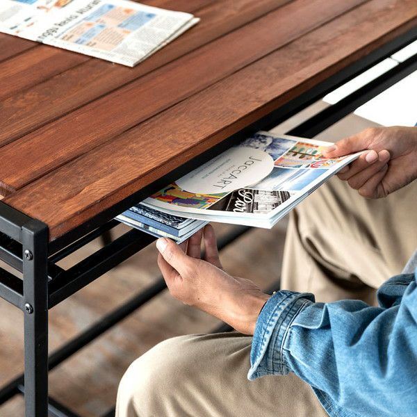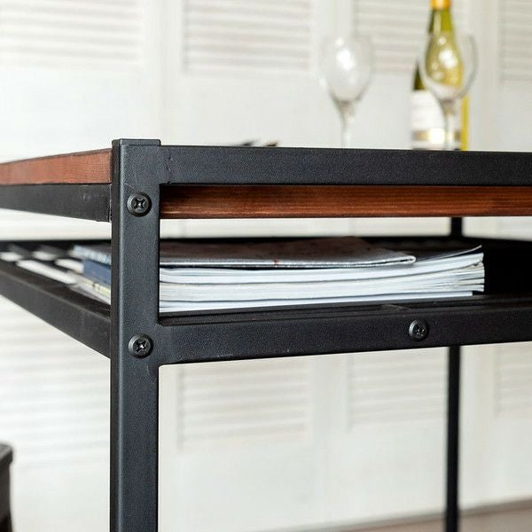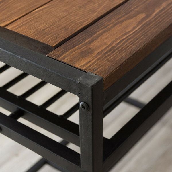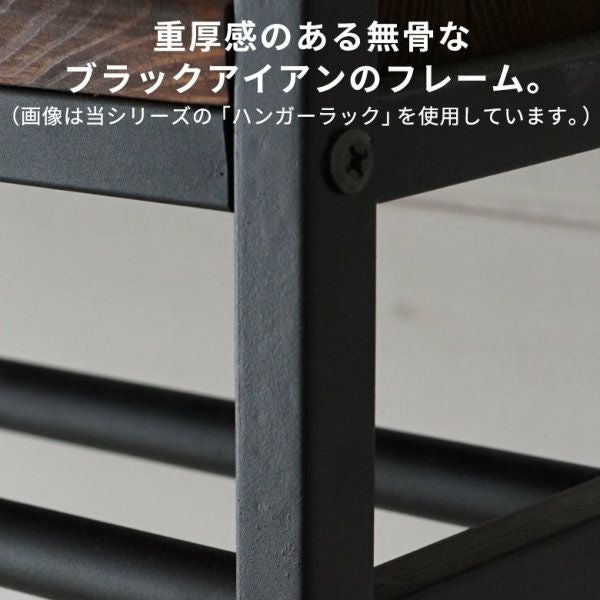 コーヒーブラウンの木部と、ブラックアイアンの脚がインダストリアルな