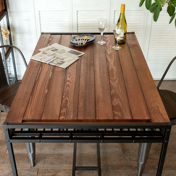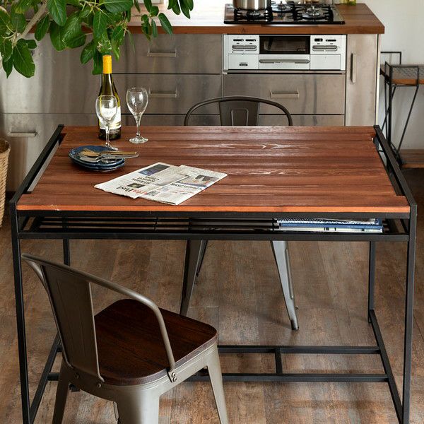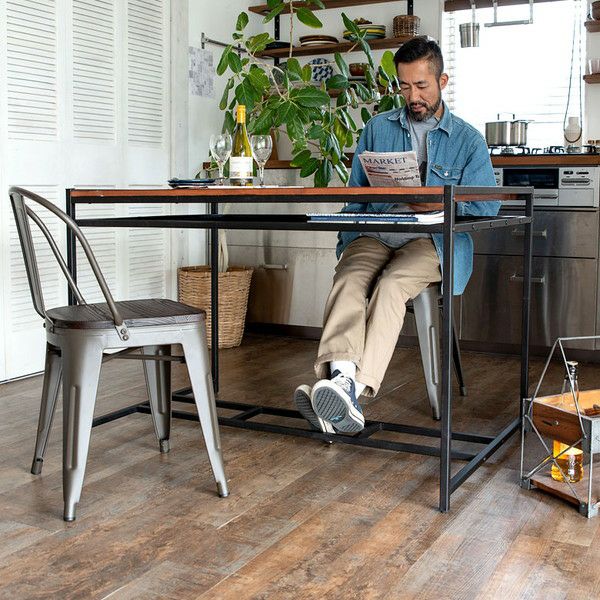 ダイニングテーブル ブラックアイアンフレーム家具 リビング ダイニング キッチン家具 台所 木製 書斎机 おしゃれ 無垢材 アイアン ウッド スチール カフェ タバス TABAS シリーズ ダイニングテーブル 木製 無垢材 アイアン 棚付き 四人掛け ブラウン タバス TABASシリーズ (63701) 【生活雑貨のELEMENTS本店】