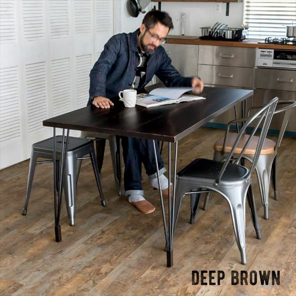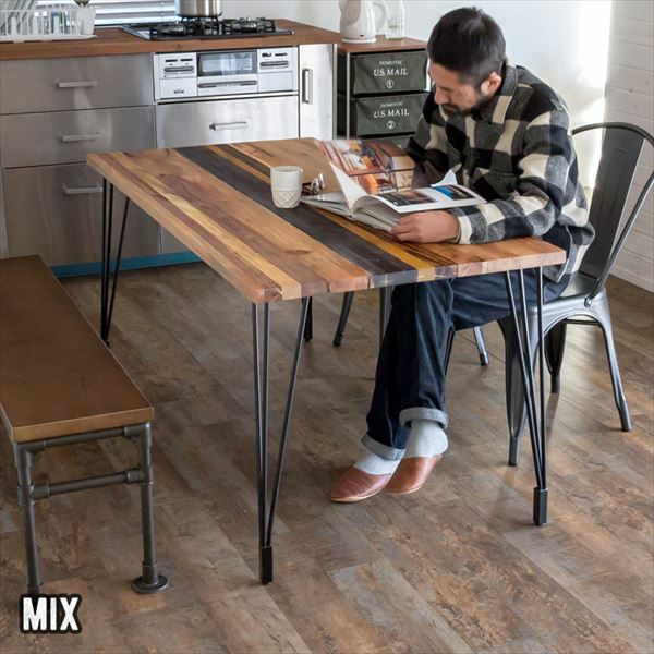 天然木とブラックアイアンのダイニングテーブル