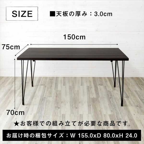 ダイニングテーブル センターテーブル かっこいい おしゃれ 天然木×アイアンフレームのダイニングテーブル【150cm×75cm】(91046)【生活雑貨のELEMENTS本店】