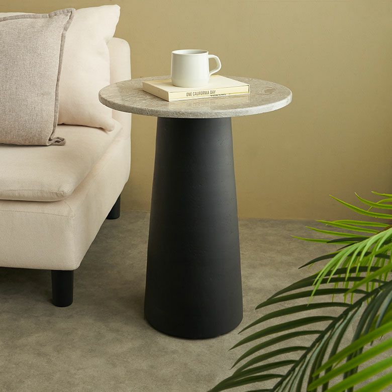 天然大理石とスワールウッドを組み合わせた、上質な素材感が魅力のサイドテーブル。