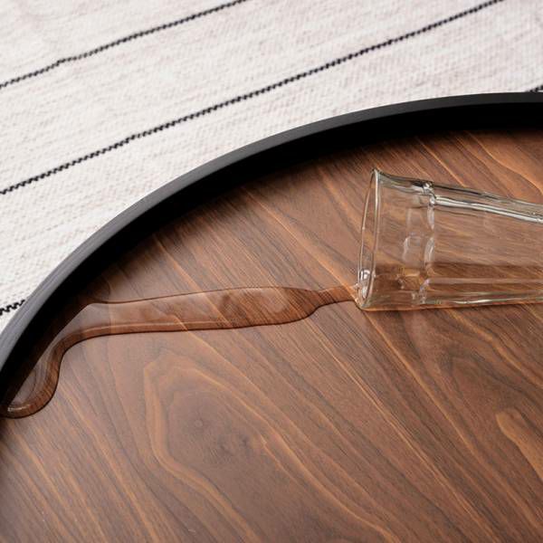 フチが立ち上がったトレイ形なので、うっかり飲み物をこぼしても安心。