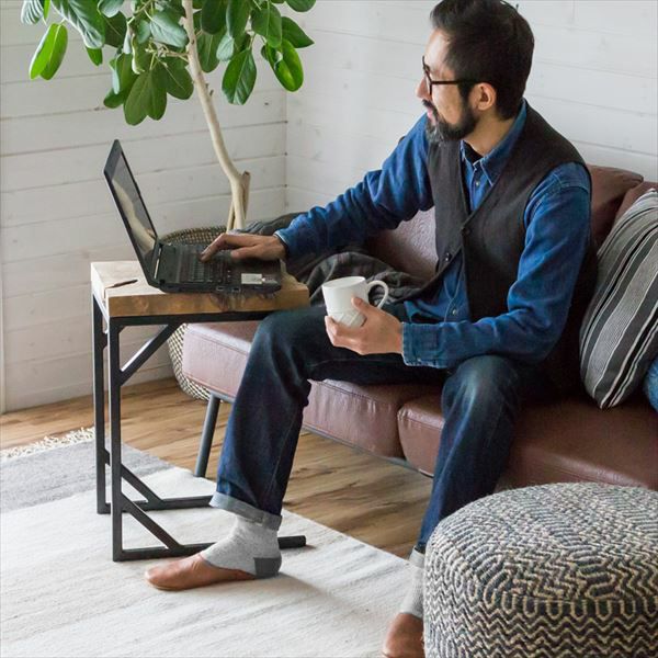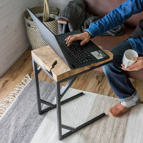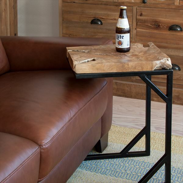 そのままを活かした無骨なサイドテーブルで