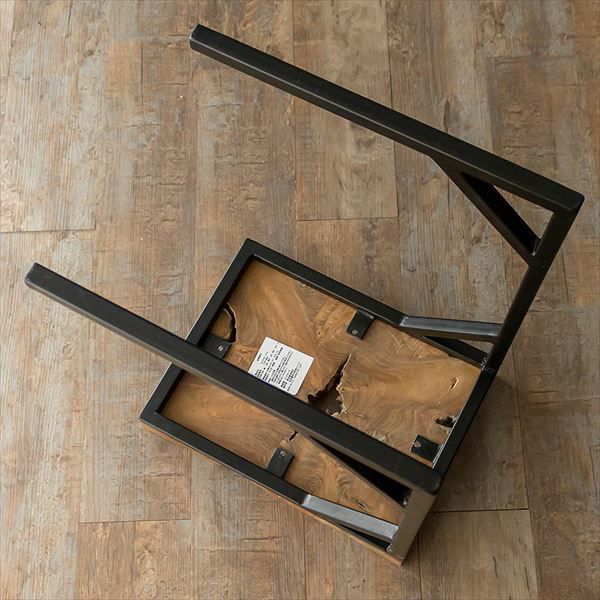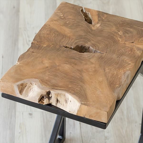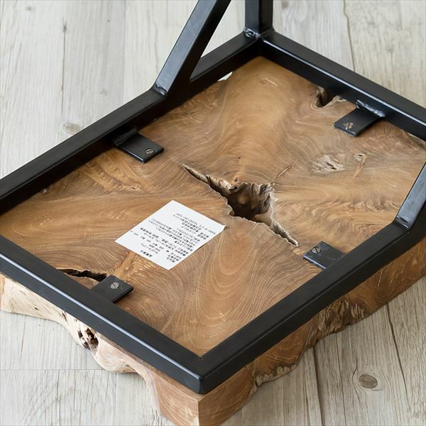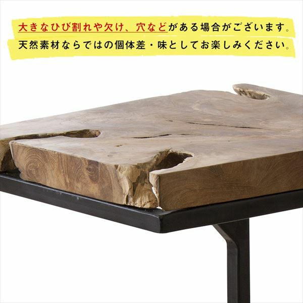 チークの無垢材そのままの形を生かして作った天板と、