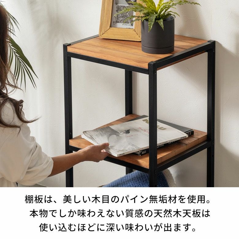 棚板は、木目の美しいパイン無垢材を使用。