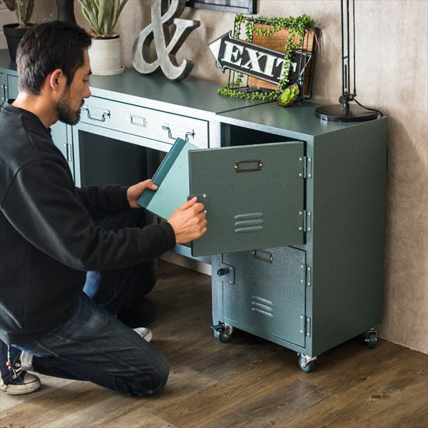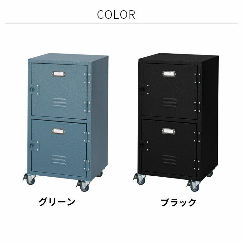 デスク収納 デスクサイド 電話台 整理棚 リビング収納 チェスト ロッカー風 2段 キャスター付き スチール製 グリーン ブラック [91250]【 サイドチェスト サイドテーブル 収納 キャビネット サイドキャビネット スチールワゴン おしゃれ 】