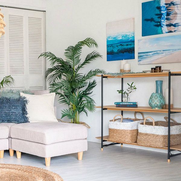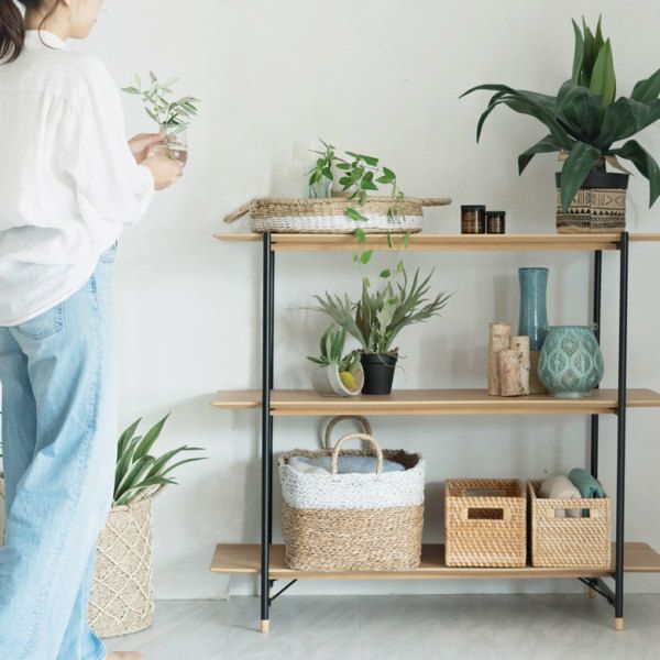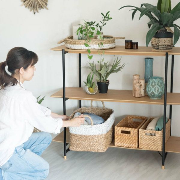 少し深めの奥行で、バスケットを置いたり、グリーンを飾ったりと収納力もGood。