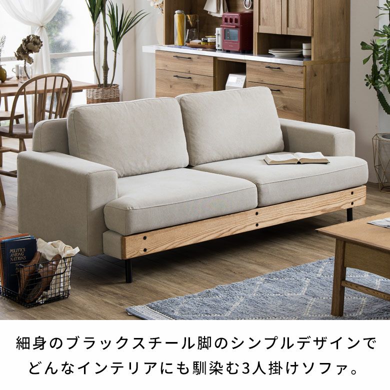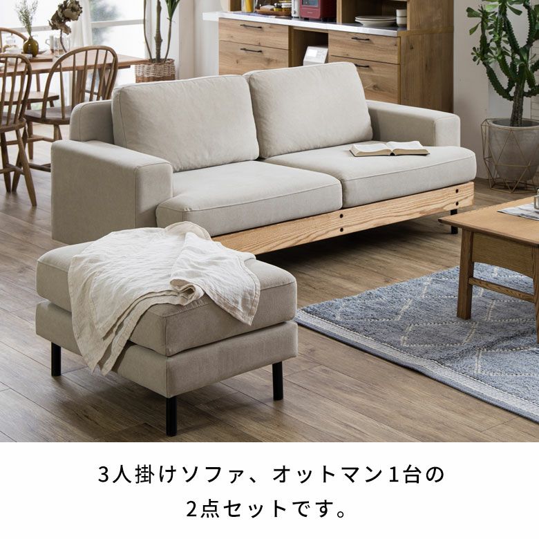 他の画像を見る 細身のブラックスチール脚のシンプルデザインで、どんなインテリアにも馴染みやすい3人掛けソファと、ヘッドレスト、オットマンの3点セット 3人掛けソファ幅190cmキャンバスアイボリー ソファ・ヘッドレスト・オットマンフルセット [stc-94867-iv] 販売価格 ¥ 169,950 税込 詳細を見る お気に入りに登録する
