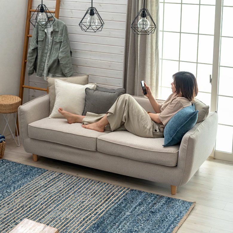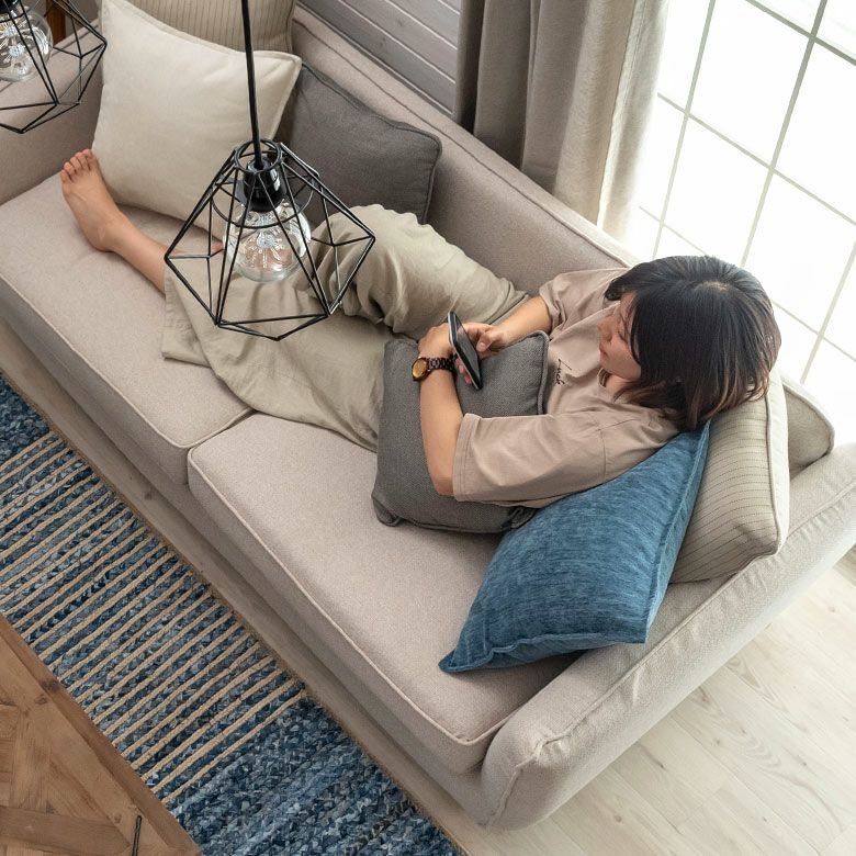 座面が幅広くてゆったり。のんびりと、くつろげるソファー。