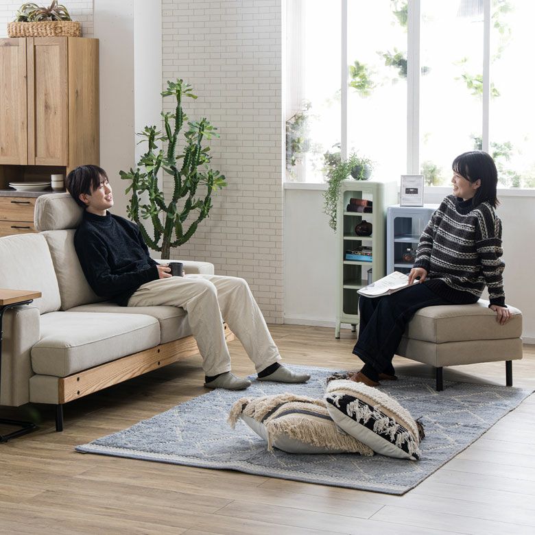 もっとくつろぎの時間を過ごせるよう、オットマンをセットでご用意しました。