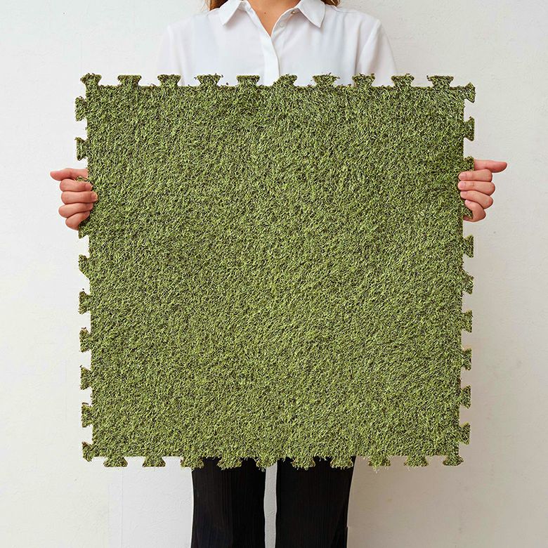 マット カーペット 芝 シバ 緑 クッションマット かわいい ジョイントマット 約 W 60cm D 60cm H 0.8cm ポリエステル EVA グリーン 18枚セット 大判 [set-99098]【 フロアマット EVAマット ホットカーペット対応 おしゃれ ナチュラル 芝生風 人工芝 子供部屋 アウトドア リビング 防音 衝撃吸収 カットOK インテリア 西海岸 】