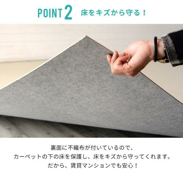 - フローリングカーペットの裏面にはコットンや不織布が貼られているので床を保護できます。