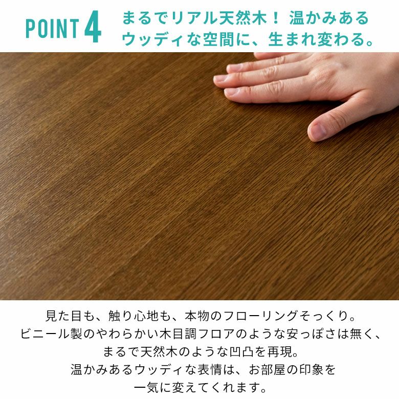 天然木のように見える化粧板ウッドカーペットで、仕上がりにもこだわりました。