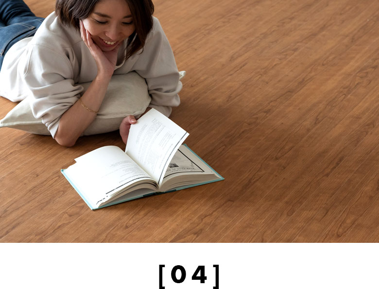 見た目も、触り心地も、本物のフローリングそっくり。