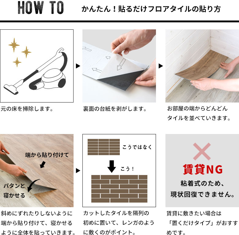 台紙をはがして、ペタっと床に貼るだけ!