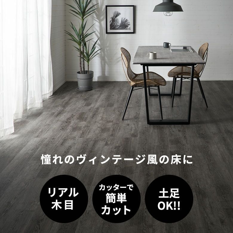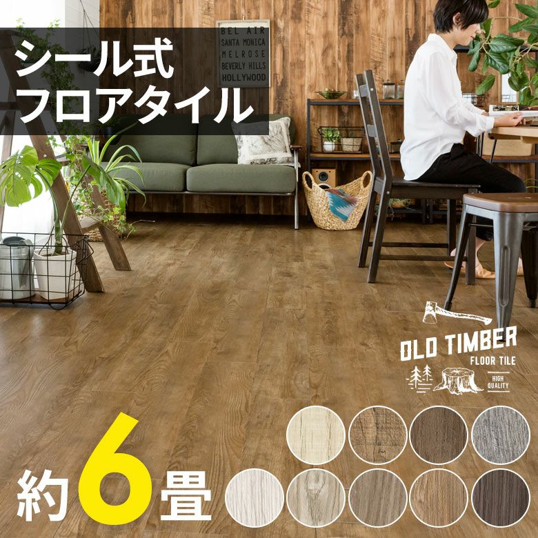 ▲貼るだけ、カンタン。木目がリアルなシールニュアンスカラーの式フロアタイル