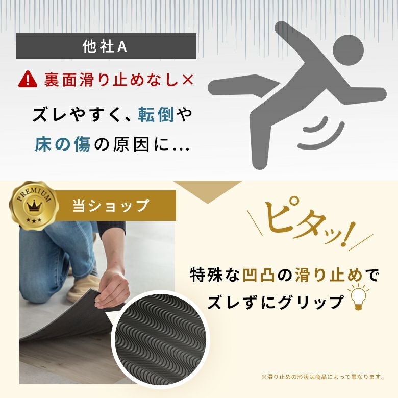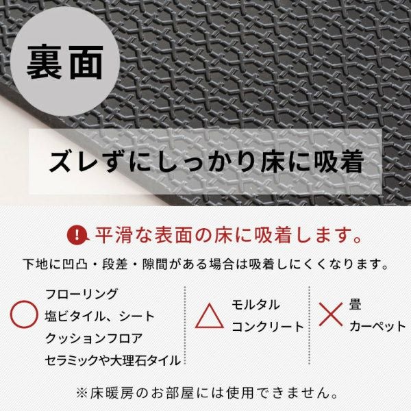 裏面の滑り止めが、フローリングなどの平坦な面にピタっと吸着!