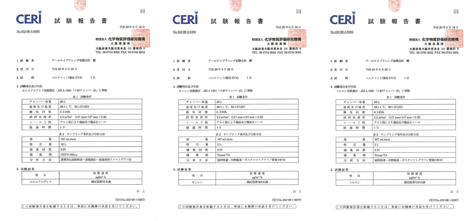 日本の検査機関「財団法人化学物質評価研究機関」で検査を行い
