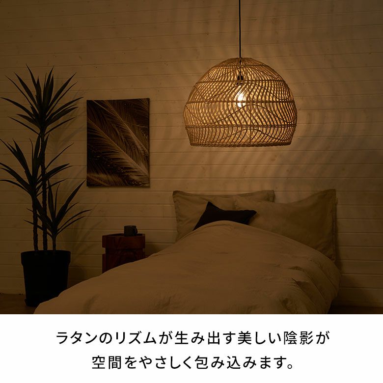 シェードランプ コースタル ナチュラル ペンダントランプ 和室 ランプシェード ペンダントライト 照明 ラタン 籐 1灯 口金E26 60W LED対応 約 径 46cm 高さ 35cm [13982]【 天井 照明 器具 インテリア シェード アジアンランプ ペンダント照明 吊り下げ 和モダン リビング ダイニング 寝室 おしゃれ リゾート 北欧 西海岸風 塩系 男前 】