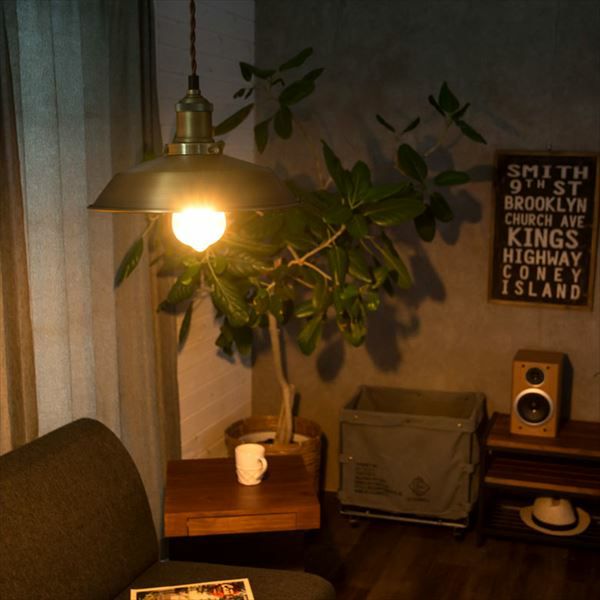 ツイストされた吊り下げコードは無骨でアンティーク感があり、