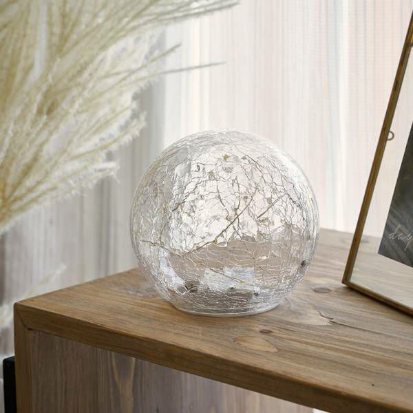 クラック加工が幻想的な、ガラスの球体のLEDライト。