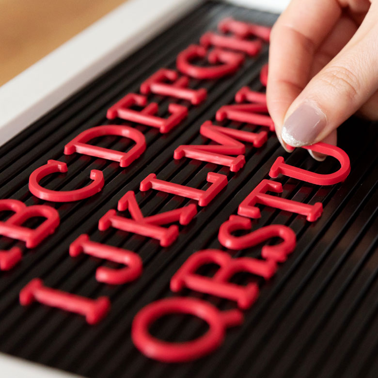 ボードの溝に、プラスチック製の文字を