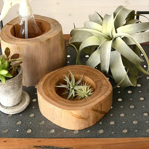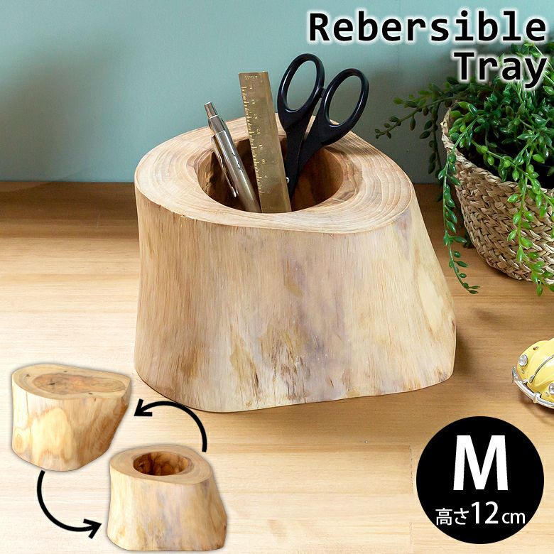 天然木の切り株そのまま。ぬくもり感じるチークウッドの飾り台。 チークウッドのリバーシブルトレイ(M-約12cm)[約15x12cm] (11860)【生活雑貨のELEMENTS本店】