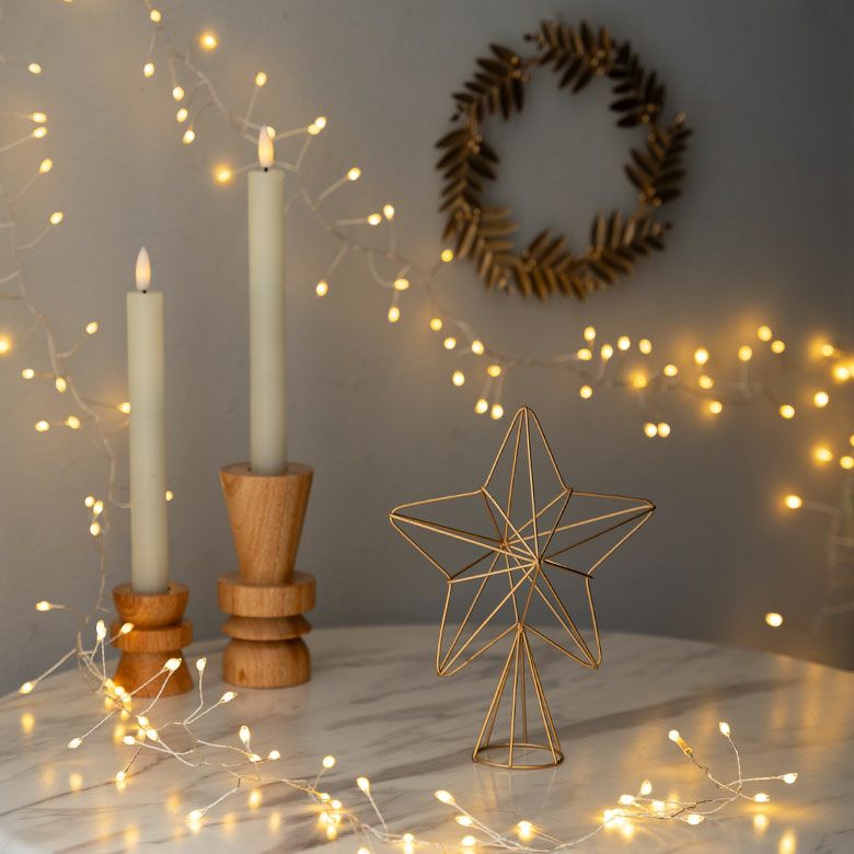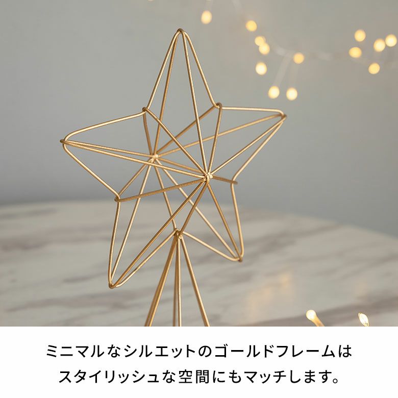 ツリーの頂上を彩ってくれるゴールドフレームのツリートッパー。