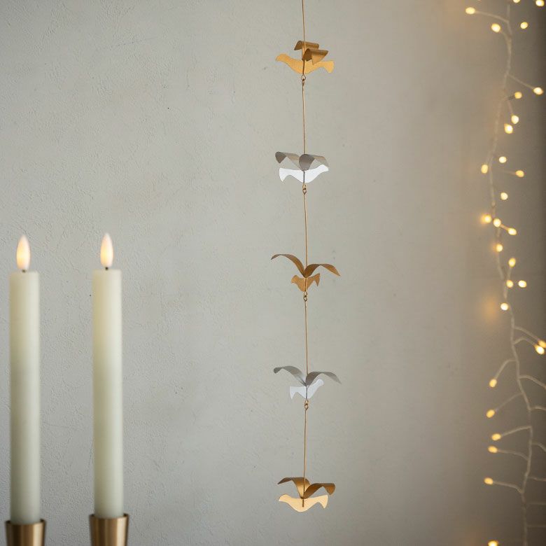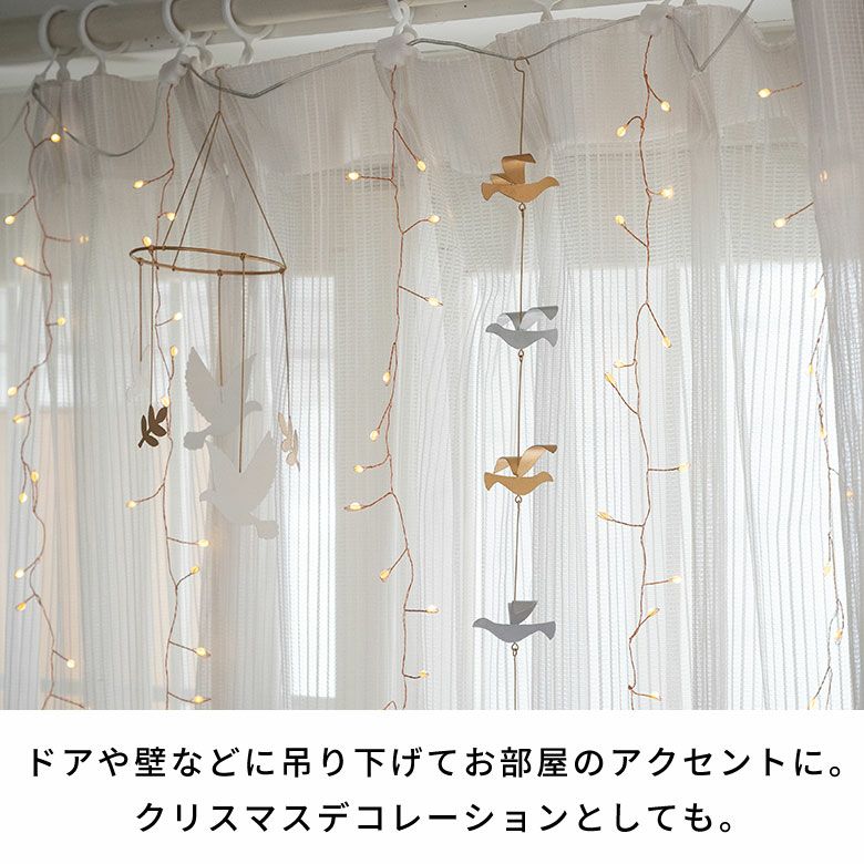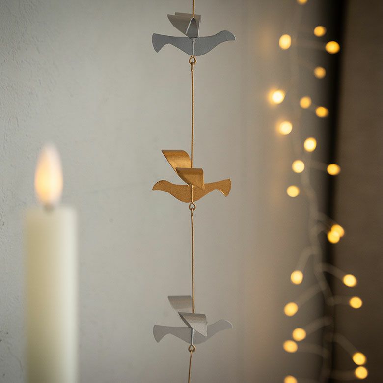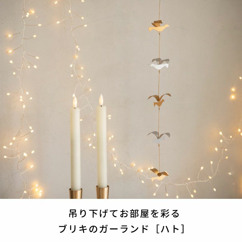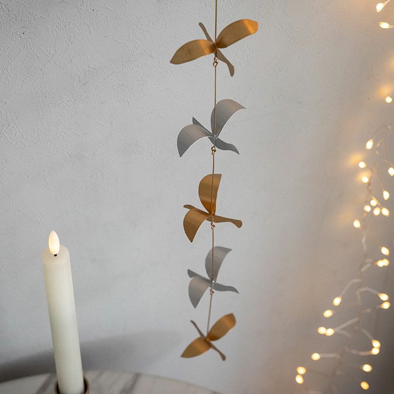 ブリキの小さなモチーフが連なり優しく揺れるガーランド。