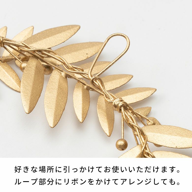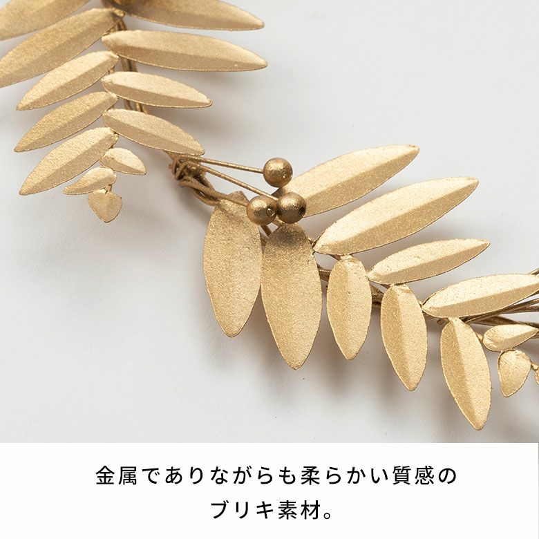 マットゴールドの上品な輝きがスタイリッシュな、ブリキ製のリース。シックで大人な雰囲気が魅力。一つ一つ職人の手でていねいに作られたブリキのワイヤーリースです。素材に使われている錫(すず)は、金属でありながらも柔らかい質感で優しい雰囲気に。