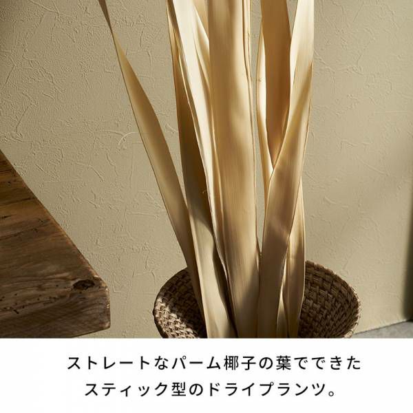 ストレートなパーム椰子の葉を素材にした、スティック型のドライプランツ。