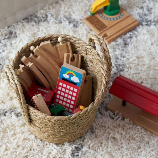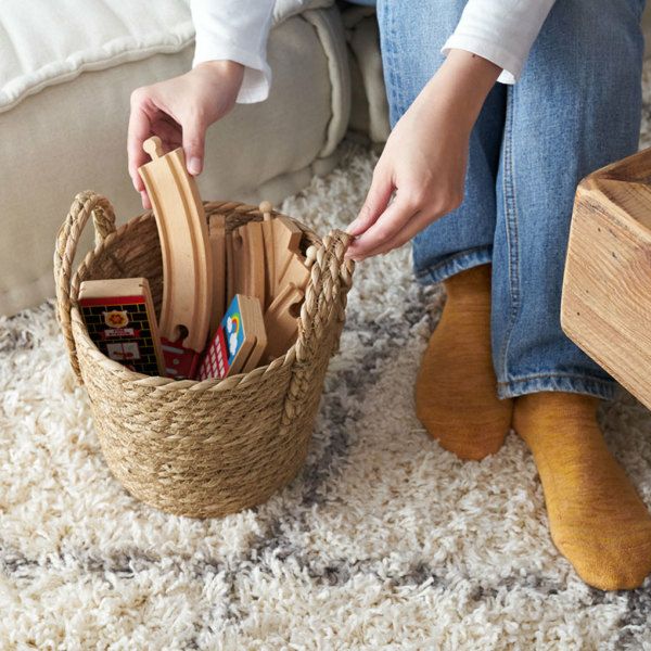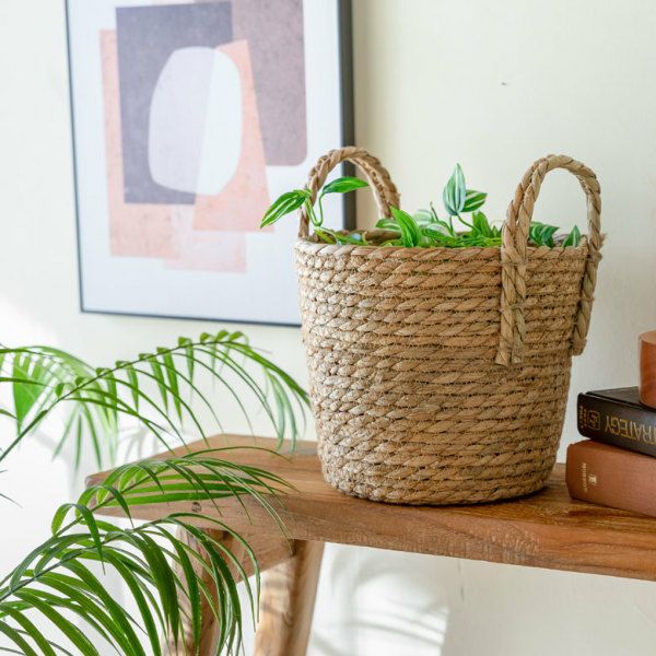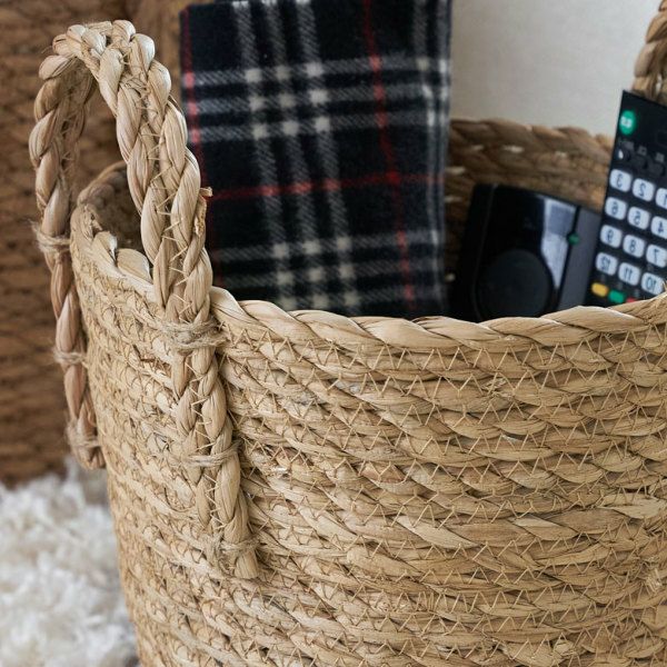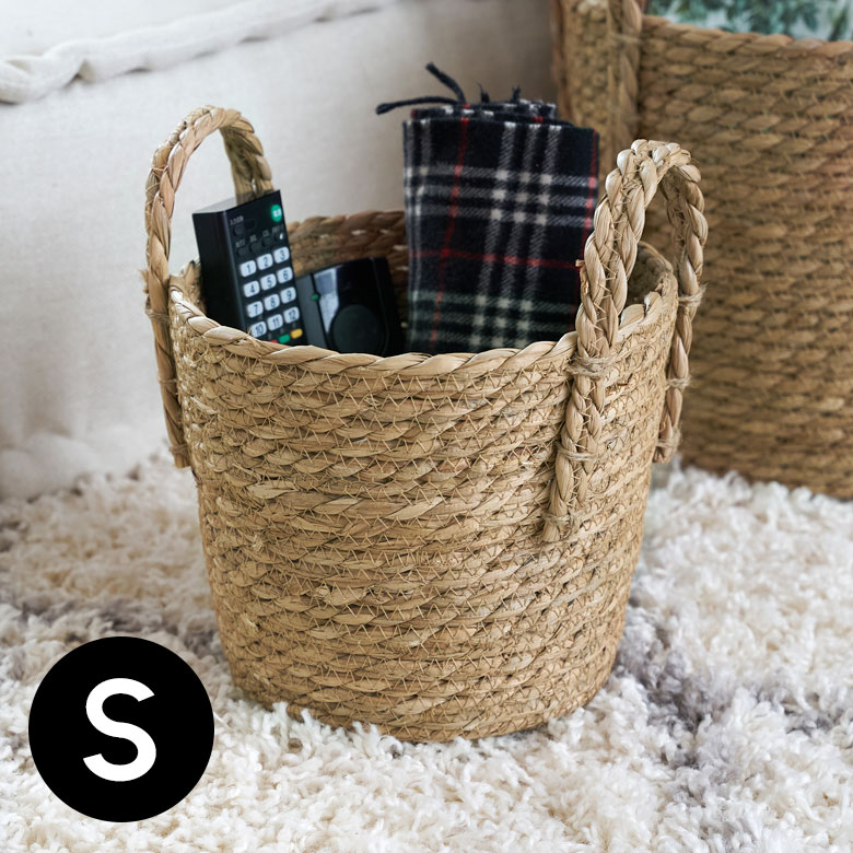 かごバスケット 収納かご 収納バスケット おもちゃ収納 かご バスケット 持ち手付き 収納バスケット ラッシュ製(い草) Mサイズ 約 W 25 × D 25 × H 21 cm [67085]【 かご 籠 丸 円形 丸型 プランターカバー 鉢カバー 小物入れ リビング収納 7号 8号 観葉植物 北欧 おしゃれ 西海岸 インテリア 韓国 】
