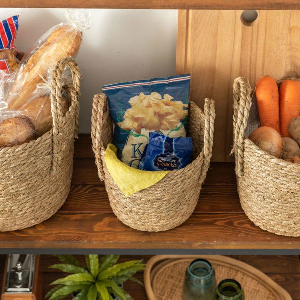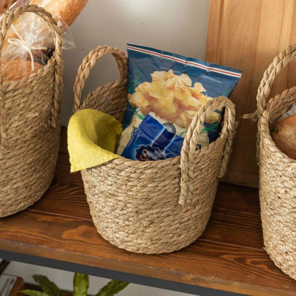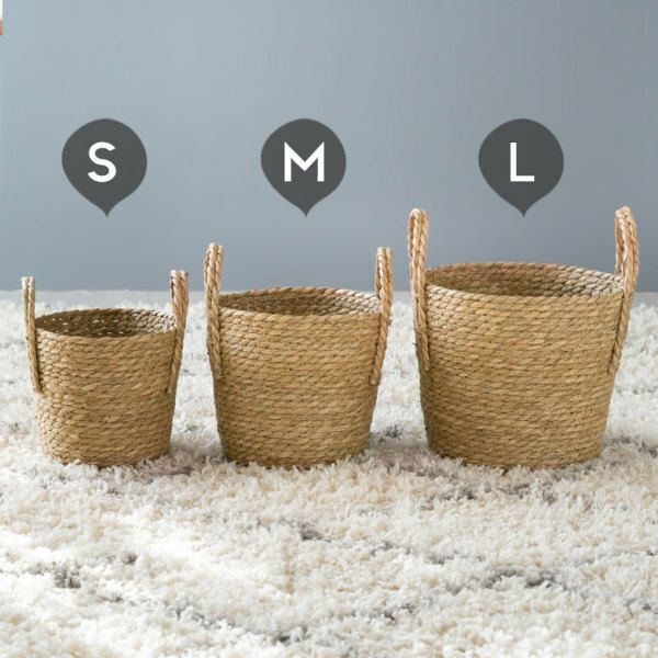 かごバスケット 収納かご おもちゃ収納 ランドリーバスケット 【3個セット】バスケット かご ハンドル付き 収納バスケット ラッシュ製(い草) S.M.L3個セット [set-67084-67086]【 かご 籠 丸 円形 丸型 プランターカバー 鉢カバー サイズ違い シリーズ 5号 6.5号 7号 8号 9号 観葉植物 北欧 おしゃれ インテリア 韓国 】