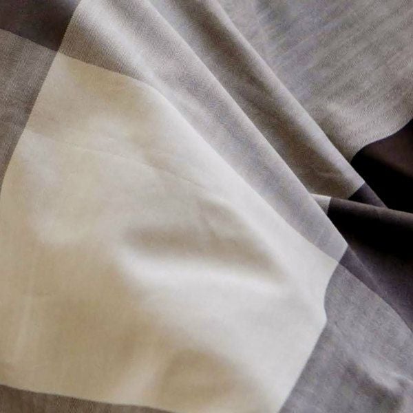 先染めの色糸で織り上げたブロックチェック柄は