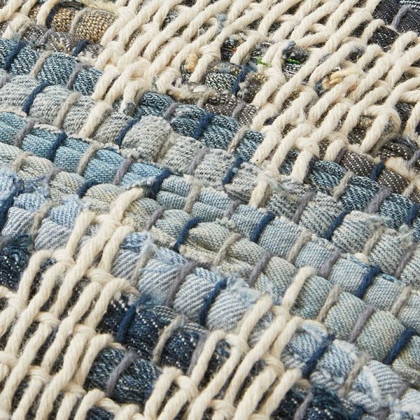 濃淡のあるデニム生地に、シェブロンの編み込みの爽やかなデザイン。
