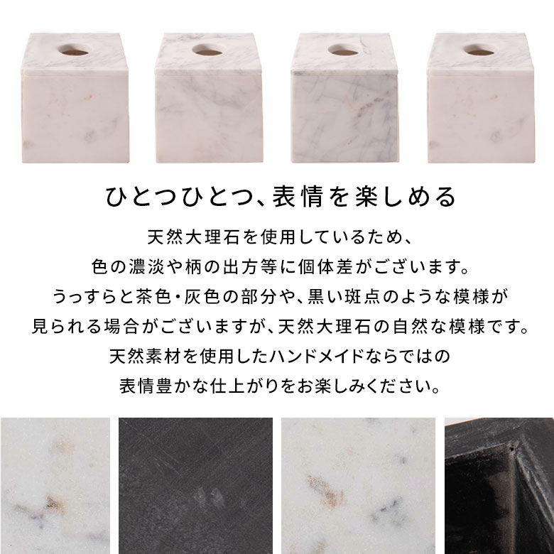 ・上質な天然大理石を贅沢に使用した、重厚感ある正方形ティッシュケース