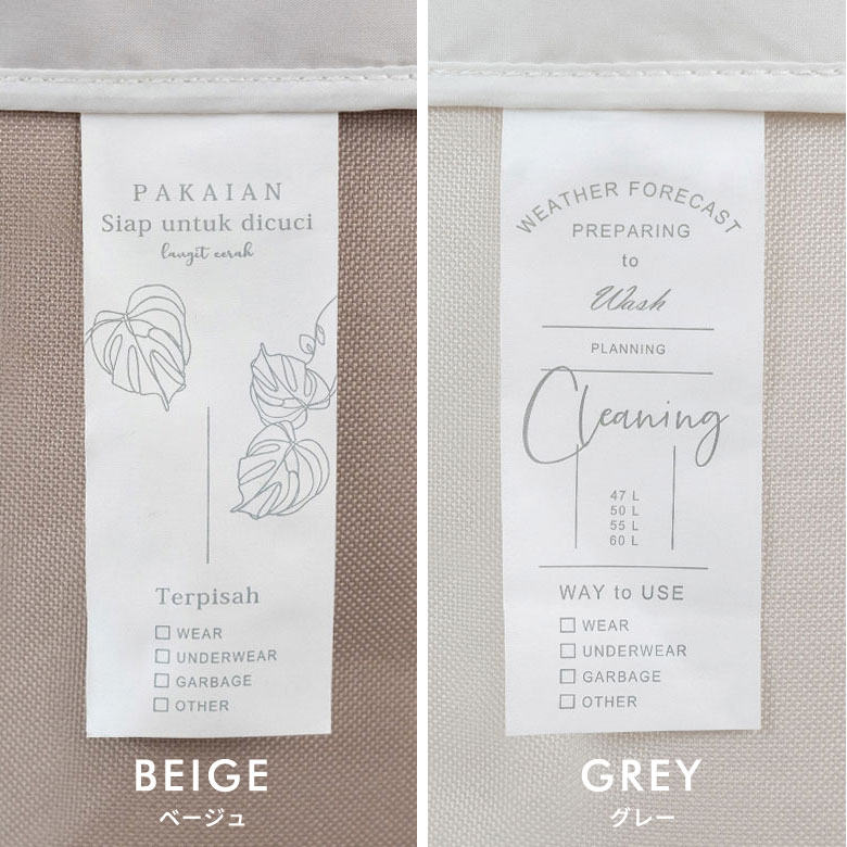 カラーごとにデザインを変えたオリジナルラベル。グレーはクリーンなトーン、ベージュはナチュラルなモチーフに。ラベルを切り取って使うこともできます。