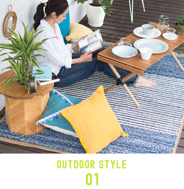 テラスやお庭にラグを敷いて脚を伸ばすだけで開放的!
