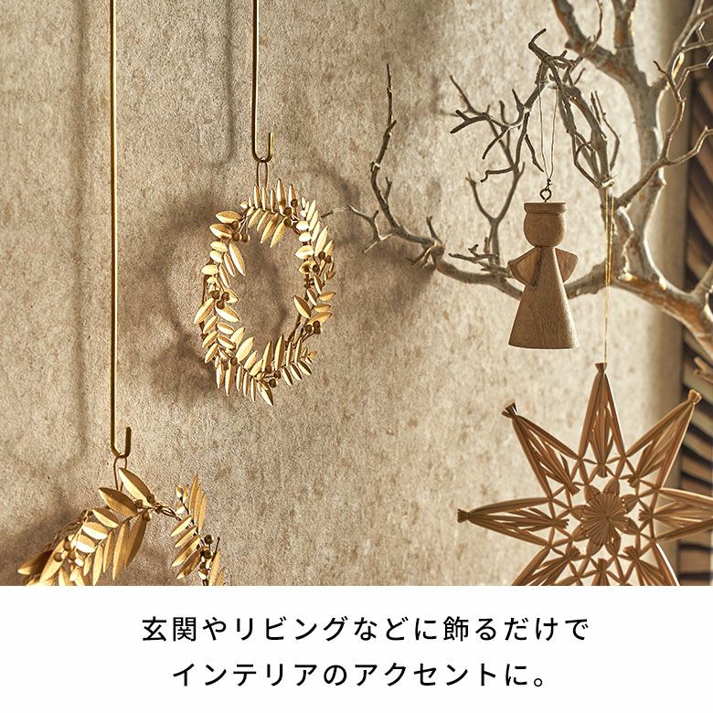 空間に馴染むシンプルなデザインなので、玄関やリビングなど、ちょっとしたスペースに飾るだけで、インテリアのアクセントに。直径12cmほどの小ぶりなサイズながら存在感たっぷり。一回り大きいLサイズと並べて飾るのもおすすめ。クリスマス用の飾りとしてはもちろん冬のインテリアとして、長く飾っていただけます。