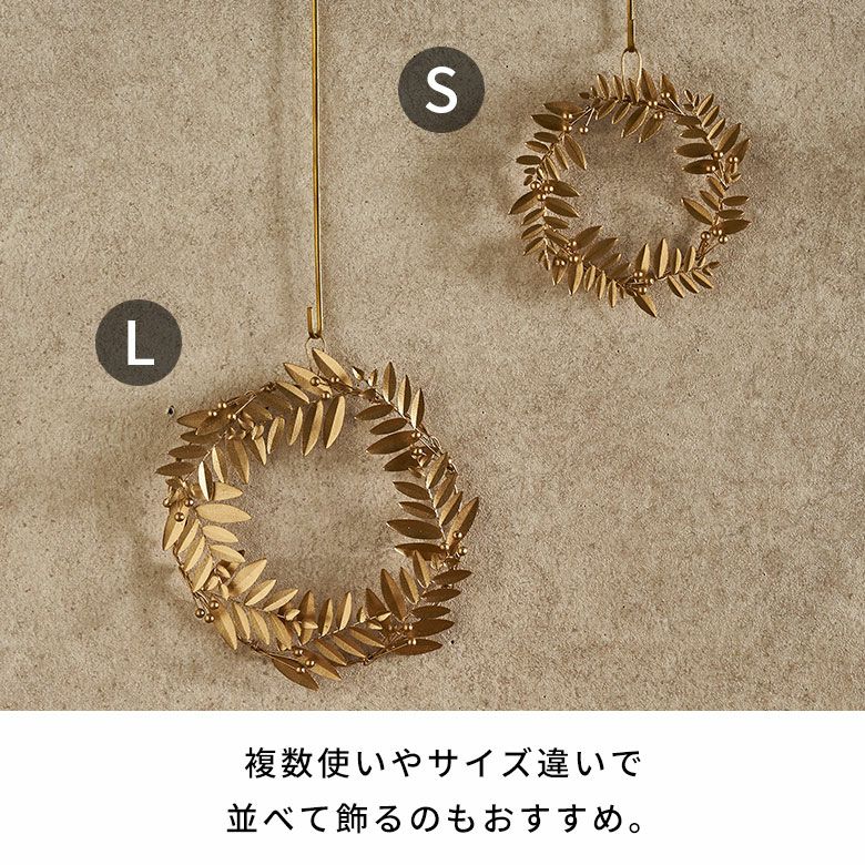 マットゴールドの上品な輝きがスタイリッシュな、ブリキ製のリース。 壁をスタイリッシュに飾る