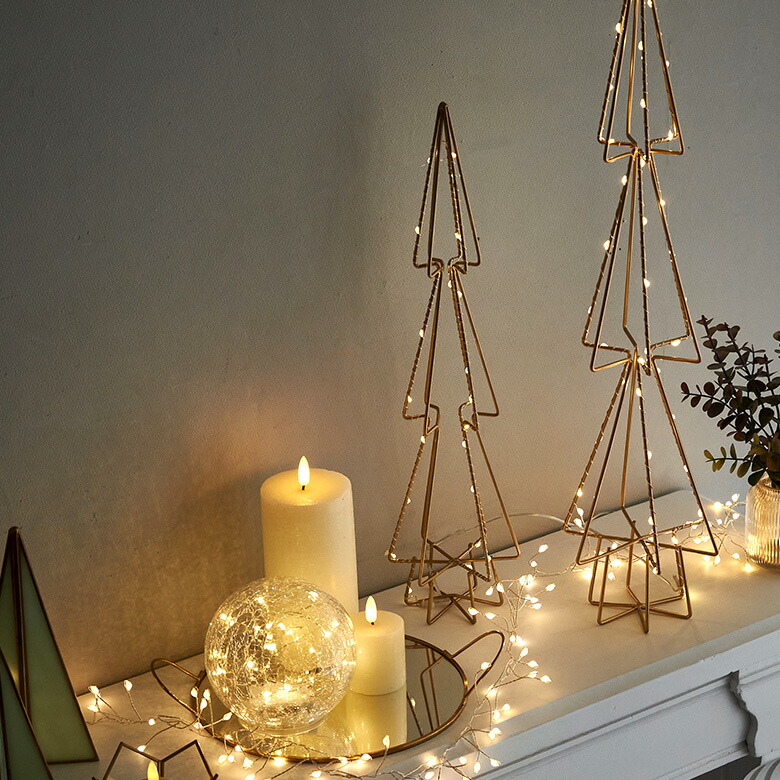 ツリー ワイヤーアート タイマー 卓上 玄関 置物 飾り 装飾 照明 デコレーション クリスマス飾り 店舗 カフェ 点滅機能 屋内 室内 LEDツリー 金 省スペース ギフト プレゼント クリスマスツリー LEDライト クリスマス 電飾 LED ゴールド 高さ 58cm 直径 14cm イルミネーション ライト 電池式 おしゃれ シンプル かわいい クリスマスデコレーション 間接照明 オブジェ インテリア パーティー リゾート 雑貨 Horn Please MADE 西海岸 [94742]