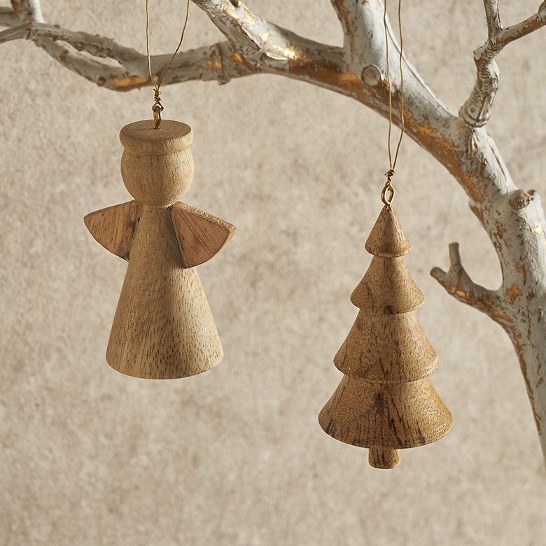 ツリー型の無垢材オーナメント