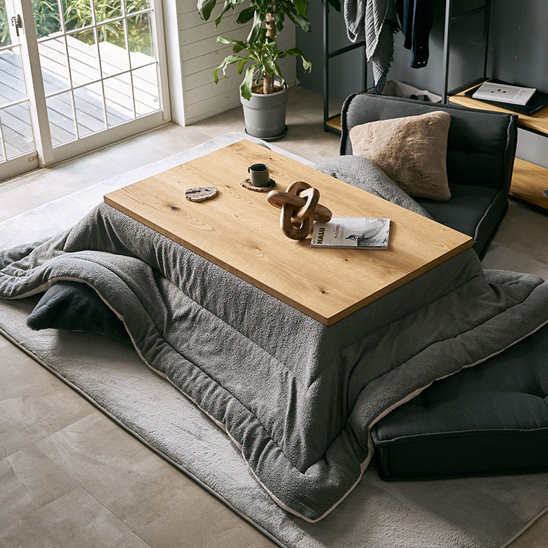 ふかふかラグやこたつ布団、ブランケットなどで冬のおうち時間を楽しんで。