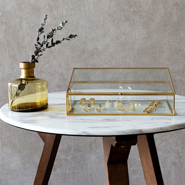 ピアス収納 イヤリング収納 クリア 透明 ゴールド プレゼント アクセサリーケース ガラスと真鍮 ガラスケース アクセサリー収納 六角形 Mサイズ [67050]【 ガラスケース ディスプレイ ジュエリーボックス ジュエリーケース ヴィンテージ 風 ビンテージ 風 アンティーク 風 おしゃれ 韓国 韓国インテリア 西海岸 】