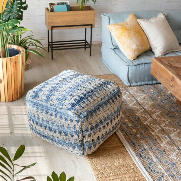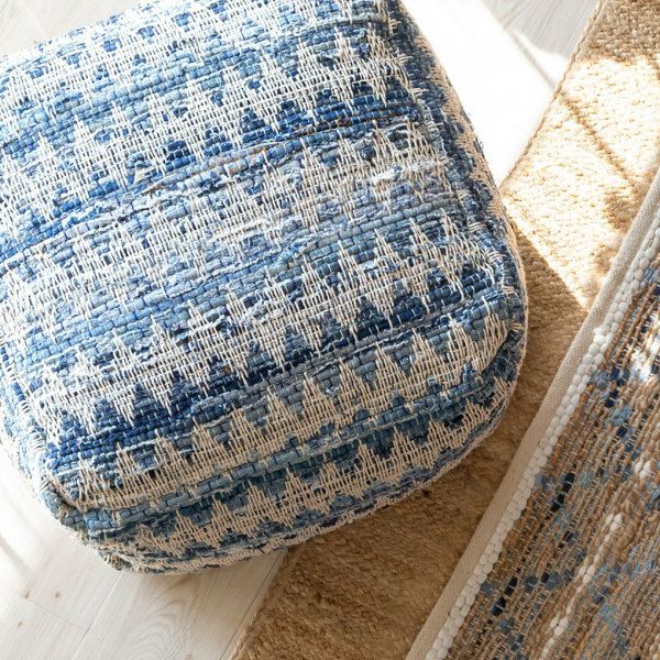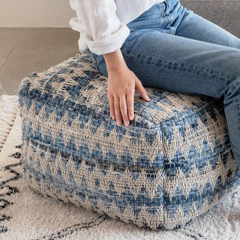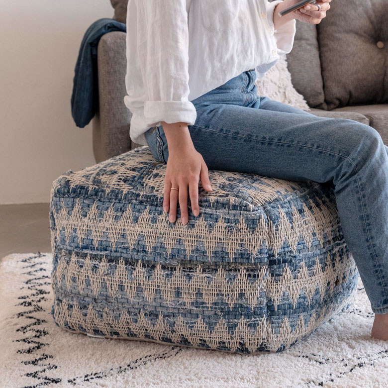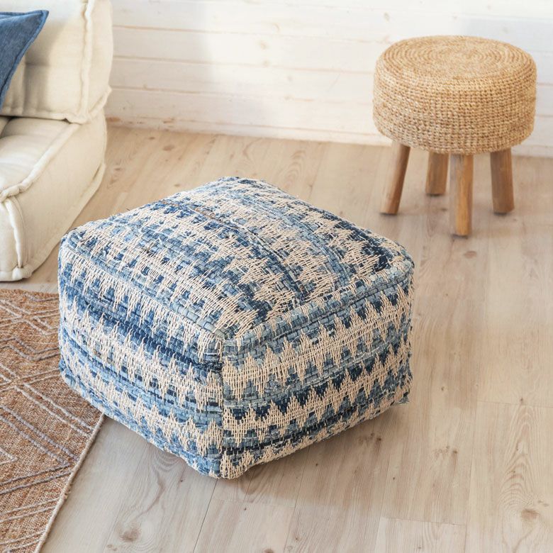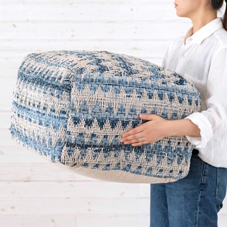 ベランピング リビング 腰掛け ビーズクッション オールシーズン プフ クッション オットマン スツール ブルー 青 W 55cm D 55cm H 37cm [34443-bl]【 raha ラーハ フロアクッション ダイヤ柄 椅子 チェア 座椅子 四角 スクエア おしゃれ かわいい BOHO ナチュラル 北欧 リゾート モロッカン ボヘミアン サーフ 西海岸 塩系 男前 】