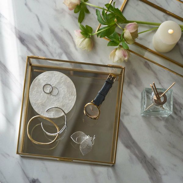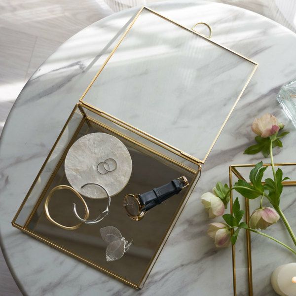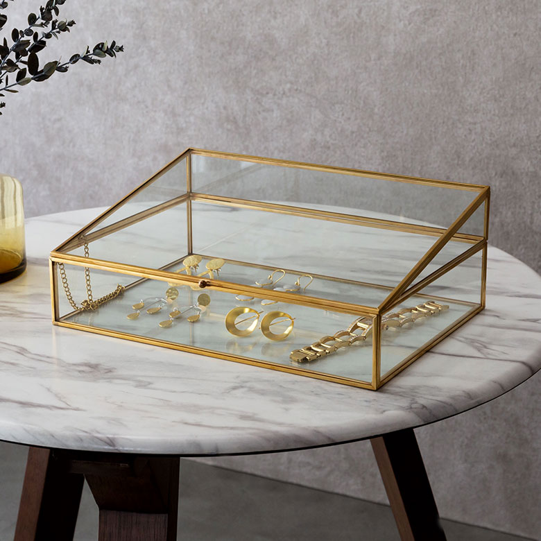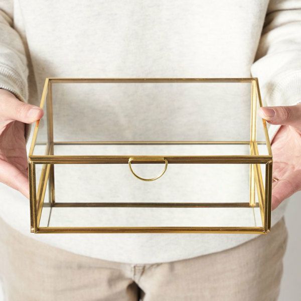 アクセサリーケース ディスプレイ 小物入れ ゴールド 西海岸 ガラスと真鍮でできた ジュエリーボックス (63280) ガラスボックス おしゃれ ガラスケース アクセサリーケース アクセサリー入れ 四角 ゴールド ディスプレイケース 小物入れ 小物収納 蓋つき 男前 インテリア 西海岸 北欧 韓国 韓国インテリア
