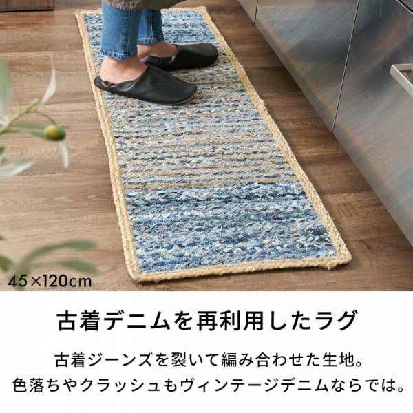 リサイクルデニムと麻を使用したラグ。